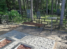 Дополнительно устанавливаем напротив надгробий металлические лавочку и столик, сидение скамьи изготовлено из дерева.